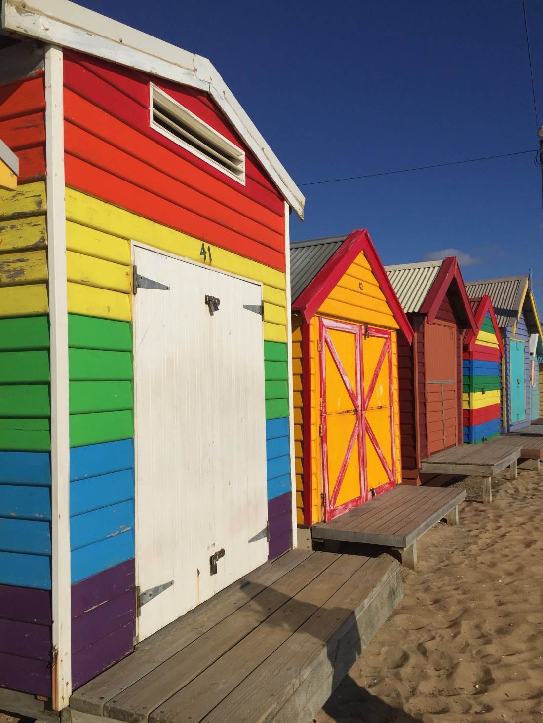 One afternoon, Agnes and I took the train down to Brighton Beach, a white sand beach about 45 minutes southeast of Melbourne. The shore is filled with small wooden bathhouses, all painted in vibrant colors. Aside from being a large tourist attraction for visitors like me hoping to take photos, the bathhouses store mostly surf gear and enable surfers to have access to their boards right on the water.