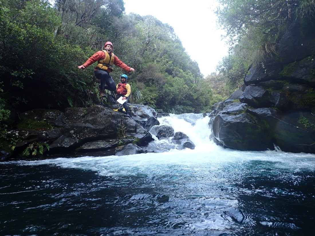 We filled the weekend the best way we know, by heading outside. Another great day was spent climbing at the Whakapapa Crag, but my last morning at the Center we did something completely new to me. Seb, one of the instructors, Bart, and I decided to go canyoning in the Mangatepopo gorge. Essentially, we had four hours floating down the icy river on our backs. It was nonstop entertainment as every few hundred feet there would be a rapid that we would run, or a an opportunity to cliff jump from as high as 30 feet. To finish our morning, the water flows into a massive 70 foot waterfall. Rather than jumping into the shallow rock pool below, we abseiled down the side of the rock face right next to the roaring waterfall. My adrenaline was definitely pumping the whole day and it was a fantastic way to finish off my time at the Center.
